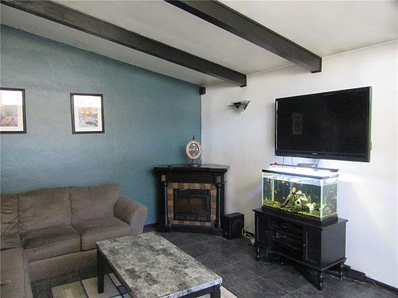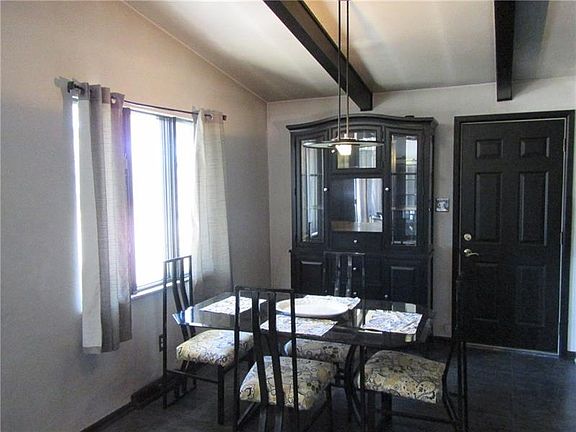 UNIQUE CHARACTERISTICS & HUGE FINISHED BASEMENT is what sets this home apart from the others. Step onto the inviting front porch into the open living & dining space and your eyes focus right up to the vaulted ceiling and exposed beams. The wall of windows in the living room allow the natural light to fill the room. Cozy up near the electric fireplace that stays. Bright kitchen has ample cabinet and counter space and all kitchen appliances are included. Full bath has been updated on the main floor. Very nice size Master Bedroom. Downstairs offers 2 very large separated spaces and a half bath! The pool table stays!! Plenty of storage in the utility room and closets. Washer and dryer are included with the sale as well. Open the back door and walk up to the hot tub that is also included in the sale! Nice maintainable backyard that has 2 possibly 3 parking spaces and a storage shed. Sellers are offering a one year Home Warranty with the home purchase.