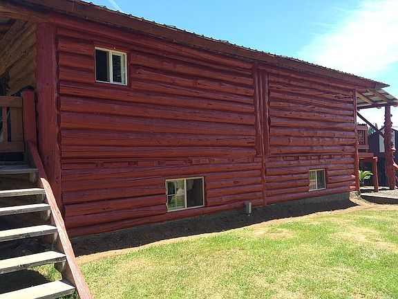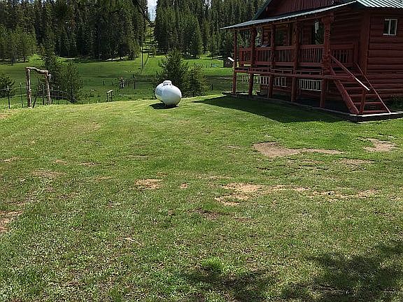 Beautiful log cabin design with vaulted ceilings. Front and back elevated decks with new railing and gorgeous views of mountains and meadows. Home boarders 200 privately owed acres. Property has RV cover and camper hookups; great for extended family or a business revenue option. One thousand gallon concrete septic system installed in 2008 and 500 gallon propane tank. On demand hot water heater, private well, and electricity. Blue Flame propane wall heaters upstairs and downstairs and wood heat back up option. Carpet, tile, and wood flooring. Walk-in pantry downstairs. 15x30 tin wood shed/shop on property built 2015. Partially furnished; specific items are negotiable.