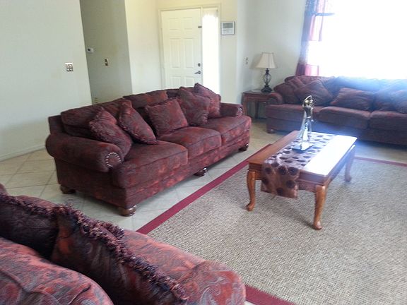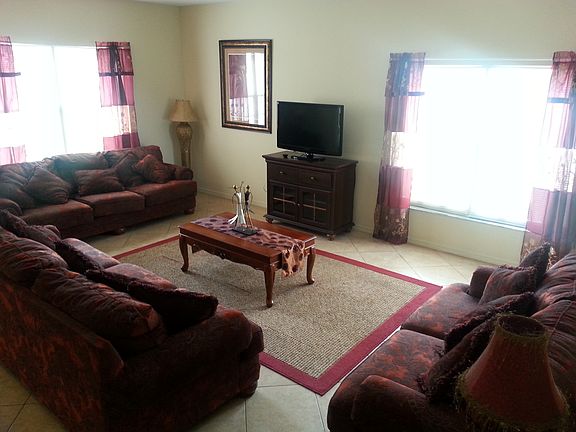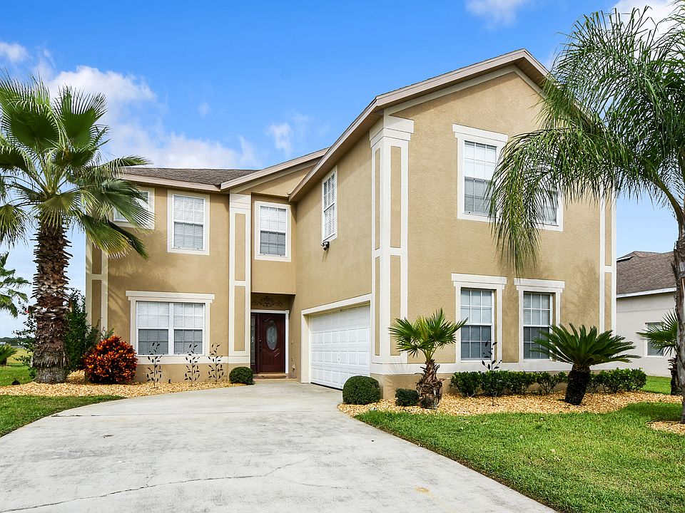 Fantastic 7 bedroom, 5 bathroom pool home with no rear neighbors in Hampton Lakes. Great floor plan, formal living room and dining room. Open kitchen with stainless steel appliances with ton of space. Kitchen opens to family room and to pool/spa area. Beautiful view of orange groves and Walt Disney World's fireworks from your pool deck! Cook out in the pool patio! One bedroom and bathroom downstairs. Master retreat with huge bedroom, seating area and full master bathroom and walk in closet. This large home is perfect for a vacation rental property, which is what current owner is using it for. If you plan to keep it as a vacation home all bookings can convey. This is a very popular home with larger families or groups. Beautifully furnished, fully equipped and ready to rent. Or if you want to make it your personal home, in the back of the community away from the main road but close to all major roads so commuting is a breeze.
