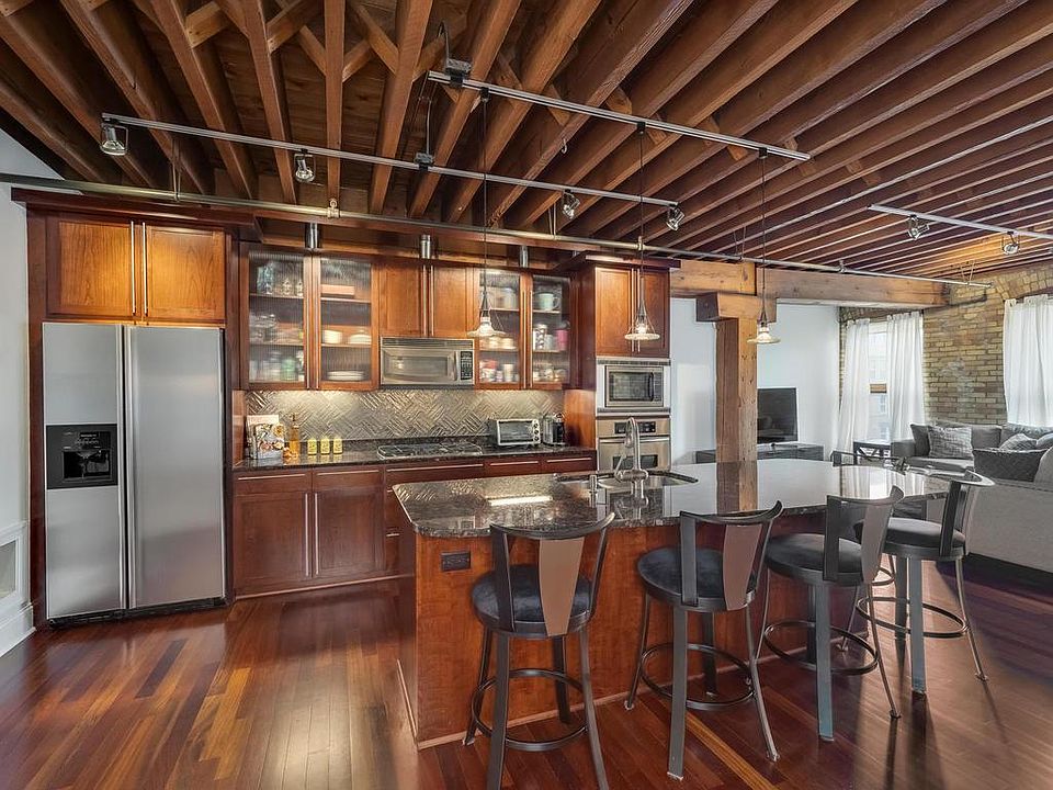 Desirable Itasca Lofts in the North Loop. Open concept layout with natural light and western views. MPLS Industrial meets modern with chic exposed brick, large wood beams, high ceilings and hardwood floors. Spacious gourmet kitchen is perfect for entertaining with large center island, granite countertops and high-end appliances. Fantastic layout to comfortably design an open floorpan with dining, living and home office. Updated bath with double vanity, walk-in shower and dual-shower heads. Brand new upgraded a/c installed in 2020. In-unit washer/dryer. Contract parking available at Borealis Ramp located just across the street with easy access to covered, heated parking. Shared patio with green-space bocce ball and grills! Main floor neighborhood coffee shop 'In the Loop Coffee Co.' and historic architecture throughout. Utilize all the North Loop has to offer with dining, boutique shops, the river and entertainment.