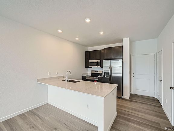 Low maintenance living in the gorgeous new Sky Ranch community. Just lock up and go. This brand new 2-story townhome in a 5-plex features 2 bedrooms, 2.5 baths, great room, kitchen, upper laundry, loft, 2 car attached garage (rear alley entry) and conditioned crawl space. Gorgeous finishes and upgrades throughout including luxury vinyl plank flooring, stainless steel appliances, slab quartz counters and more. Builder provides the latest in energy efficiency and state of the art technology with several fabulous floorplans to choose from. Energy efficiency, and technology/connectivity seamlessly blended with luxury to make your new house a home. Homes with an alley are subject to an additional $27 per quarter. Current monthly fee subject to change. Photos are model only and subject to change.