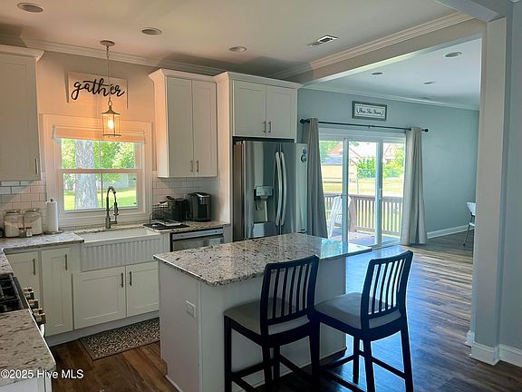 Charming and updated 3 bedroom home in the heart of thriving Washington NC! Beautiful home on a spacious corner lot just blocks from the Pamlico River and the bustling downtown area with all its amenities. Convenient to city hospital and medical district and walking distance from a brand new elementary school to be completed later this year. This home features an open floor plan with a primary bedroom and bathroom suite downstairs. 2 /12 baths, solid surface and stainless steel in the kitchen and new high grade laminate floors throughout. This is absolutely a front porch and back deck kind of location with a spacious shady cleared back yard begging for all kinds of recreational activities!