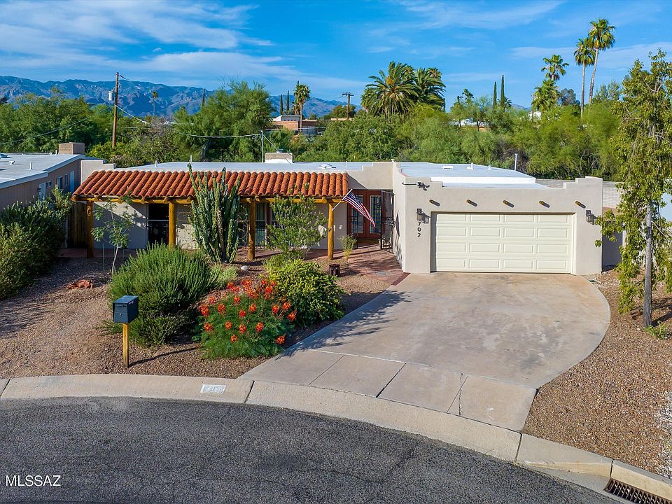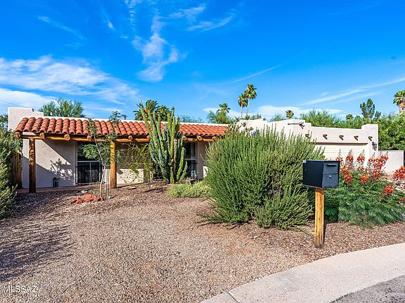 Charming Southwestern style home nestled in the highly desirable El GHEKO neighborhood. Featuring a spacious 3 bed/ 2 bath split floor plan on a large lot with room for a pool. All part of a quiet and neighborly community with no HOA! Upon entry, experience the warmth of the beautiful Saltillo flooring throughout the main living areas. The gorgeous knotty pine doors, wooden trim, and updated interior paint creates an ambiance you will feel right at home in. The kitchen, truly the heart of the home in this layout, has a welcoming color palette with stainless steel appliances, extra pantry space, reverse osmosis, and concrete countertops that overlook the charming wood burning fireplace in the family room. Large owner suite has private access to the backyard and features a bathroom suite with a lovely tiled walk-in shower, new toilet, new countertop, and new fixtures. Guest bedrooms have plenty of room and new laminate flooring. Lush outdoor space features a butterfly garden and is perfect for entertaining under the extended covered patio with mountain views. Don't miss the back gate that allows for access from the alley for your ATV or trailer! Plenty of possibilities with the huge separately gated side yard!