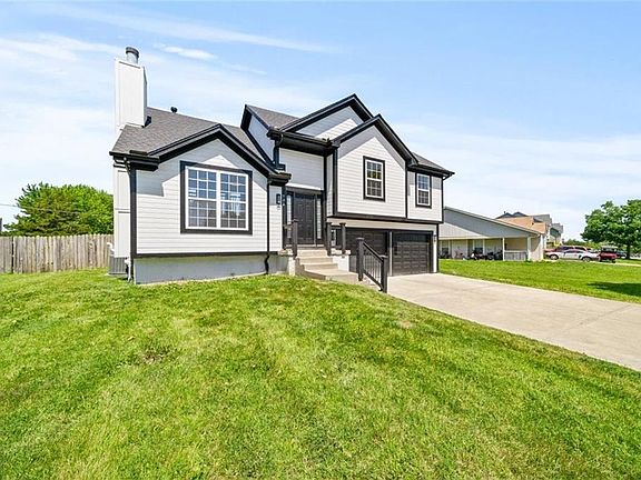 Welcome to this beautifully updated front-to-back split home in Lone Jack, MO! This stunning property offers modern updates and thoughtful features throughout, making it the perfect blend of comfort and style. Enjoy fresh exterior and interior paint, new carpet, and new tile floors in the baths and laundry closet. The inviting Great Room features soaring vaulted ceilings and a cozy gas start fireplace, perfect for relaxing or entertaining. The Kitchen shines with a new tile backsplash, granite countertops, refinished hardwood floors, a spacious dining area, an island, a pantry, and new stainless steel appliances. A generous Primary Suite includes a large bathroom with a double vanity, a walk-in closet, and a vaulted ceiling. The lower level Rec Room offers extra living space and walks out to a covered patio and fenced backyard, ideal for outdoor activities and gatherings. Additional storage is available in the sub-basement, providing ample space for all your belongings. The deep garage is equipped with a workbench and built-in storage, making it perfect for DIY projects and extra storage needs. Enjoy instant hot water with the efficient tankless water heater. NEW ROOF June 2024! This home combines modern amenities with functional spaces, ensuring a comfortable living experience for its new owners. Buyer & Buyer's Agent to verify all information including square footage, room sizes, HOA, zoning & taxes.Owner/Agent