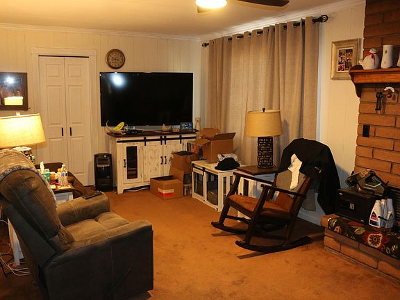 Great starter or retirement home!! Nestled in the trees is this charming 2 bedroom, 1 bath home with a one car-garage! Kitchen has a stainless steel refrigerator, microwave, and electric range all included! Also, hard wood floors in the kitchen! The cozy living room has a gas fireplace and ceiling fan. Master bedroom has french doors to the back yard! Very nice front covered porch and deck! New roof in 2023! Fresh interior paint! Dishwasher hook ups! Fenced in front and back yard! Plus additional easement past the fenced! Plenty of room for RV and boat. Hurry on this one it wont last!!
