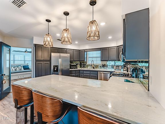 Check out this Amazing three-bedroom and two-bath Spanish villa right in the heart of st Joe Beach. Tastefully updated to be a short-term rental, a second home, or just the home you have been waiting for. This place has everything from the large Gunite in-ground pool, outdoor shower, two-car garage, golf cart, Fully furnished, and many more things you must see. This home is just a few blocks to the beautiful beaches of St. Joe Beach which is DOG FRIENDlY and the dogs are as welcome as the most beautiful sunsets you'll ever see. Come check it out. Just 15 minutes West you'll find Port St. Joe which features public boat ramps, restaurants, and a golf course. Heading East just 5-10 minutes you'll run through Mexico Beach and everything it has to offer.
