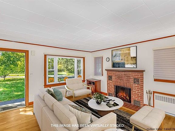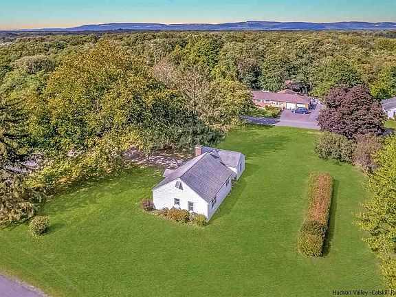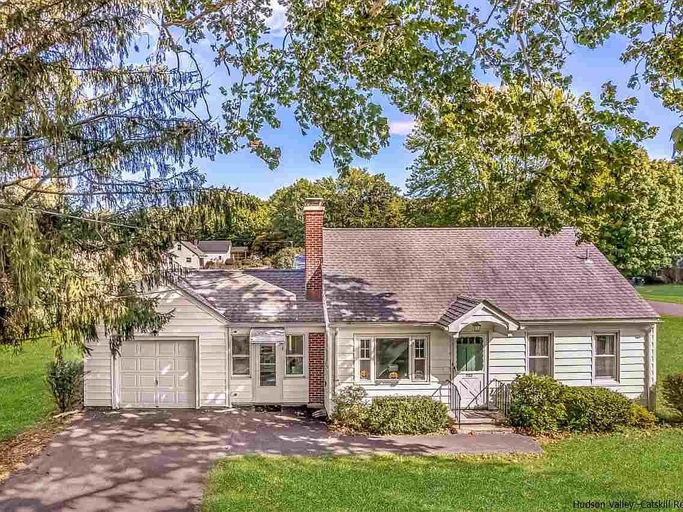 This charming ranch, shaded by a show-stopping sycamore tree, sits welcomingly at the gateway to a picturesque neighborhood. The expansive property is also graced by a mature walnut tree and a bountiful chestnut tree and stands proudly as the first home built in this small horseshoe-shaped block. It is conveniently located just minutes from New Paltz Village, the Hamlet of Highland, the Hudson Valley rail trail, Mohonk Preserve, shopping centers and the NYS Thruway entrance. The 780 sq ft home boasts an additional 576 sq ft bonus room on the 2nd level creating a total of 1,356 sq ft of living space plus a large, unfinished basement. The roomy second floor, which also incorporates storage space, could be used as another bedroom, yoga room, rec room, in-home office or private getaway. The main living level, which retains its original wood trim and wood doors, is complete with a living room including a brick fireplace, a fully equipped kitchen, a dining room, a main bedroom, a full bath and a breezeway outfitted as a laundry room that leads to the attached garage. The basement is large and was used for years by previous owners as a workshop/office space. Although it is unfinished it is designed with plenty of electrical outlets, a built-in table and tool equipment area. This home is adorable as is, but oozes with potential.