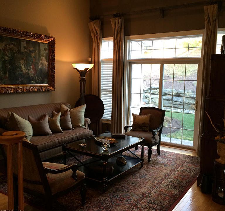 Truly exceptional! Detail in every corner of this 2 story townhouse. Unique design, hardwood floors, custom features including finished basement with gas fireplace and huge bar, first floor bath, den or possible third bedroom, master with walk in closet, Cathedral ceilings, balcony, electric awning.