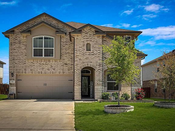 Like-new and ready for immediate move-in! This stunning home, built in 2023, boasts 5 spacious bedrooms, 3.5 bathrooms, a dedicated office, a game room, and so much more. The primary suite is conveniently located on the main floor, while a secondary suite with a private bath is upstairsideal for multi-generational living or guests. Step into the home through a grand entryway with elegant tile flooring that flows throughout most of the main level. The open-concept layout seamlessly connects the formal dining area to a modern kitchen featuring stainless steel appliances, a gas cooktop, granite countertops, a generous center island, and ample cabinet space. The downstairs primary suite offers a peaceful retreat with a luxurious en-suite bath complete with a walk-in closet, dual vanities, a separate shower, and a garden tub. Upstairs, you'll find an expansive game room, four additional bedrooms, a Jack-and-Jill style bathroom, and the private upstairs suite. Outside, enjoy a covered patio, full privacy fencing, and an irrigation system. Conveniently located near FM 1103, FM 78, I-10, and I-35, this home offers easy access to shopping, dining, and major employers.