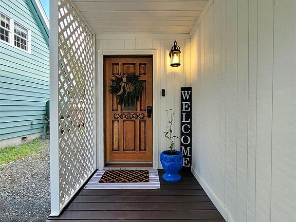 This 6-bedroom, fully fenced, 12,483-square-foot-lot contemporary-style home features a modern, well-maintained interior with freshly painted decking and exteriors. A stunning wooden staircase leads to an inviting open living space featuring vaulted ceilings, wainscoting, radiant heated floors, and an energy-efficient ceiling fan. French doors open to a lovely upper balcony, perfect for outdoor dining. The bright kitchen and dining area include a breakfast bar, farmhouse sink, solid countertops, and a butcher block island with seating. The first primary suite offers a private balcony, walk-in closet, soaking tub, and separate shower, while the second suite provides mountain views, a spacious closet, and a full bathroom. The upper level also includes two additional bedrooms and bathrooms, along with a large pantry. On the lower level, a generous living area with a wood stove, two more bedrooms, a half bath, and a laundry room with ample storage. The beautifully landscaped and fully fenced yard features a manicured lawn, renovated decks, a covered patio, and a grilling area. An asphalt driveway and gravel parking area provide plenty of space for vehicles, including boat or RV parking options...Welcome home!