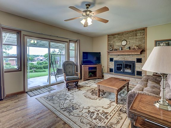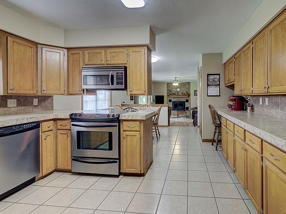 Relax on the covered back porch in the Spring or enjoy the two fireplaces in the living areas in the Winter. Spacious layout with fully-applianced kitchen, concrete countertops and stainless appliances. Over-sized master bedroom features en suite. Fenced back yard has storage building.