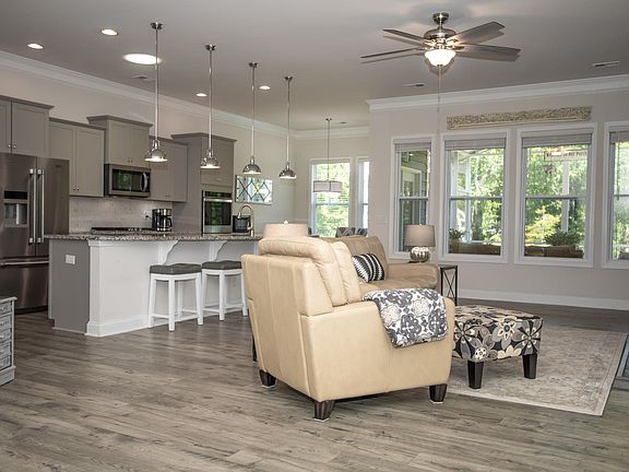 Welcome home to the Azelea floor plan, a sought-after floor plan for many reasons. The first reason would be the fact it is a one-story well-maintained home. The second might be the fact it is an open floor plan with beautiful Silverstone Chestnut Luxury Vinyl Plank flooring that flows throughout most of the main area of the home. The ceilings are topped off with a two-piece crown through most of the home with 6” baseboards. There are two generous sized secondary bedrooms on the right down the wide foyer. Then once inside the heart of the home the 18x12 Dining Rm. is on the LT. and straight ahead is the 20x18 Great Rm. The Great Rm. Is an epee center with sight lines to the 19x10 Kitchen, Dining, and 18x14 screen-in porch. A floor plan worthy of gatherings or relaxing times. The Great Rm. has ample wall space along with a gas log fireplace & black slate fireplace hearth, a tv mount in place, there are 4 windows aligning the back wall to provide natural light to include a solar powered tube light. Proceed to the kitchen where you will find plenty of storage in the Brellin Stone Gray cabinets that align the back wall of the kitchen and encompass the center island. This stellar kitchen is equipped with a chef’s gas whirlpool stainless steel appliances featuring 30” double wall oven, 30” 4 burner gas cooktop, built-in microwave, dishwasher brick laid tile backsplash. This well-lit kitchen has 4 custom Home Belle 9” Pendant Light adjustable length with Swivel shades Pendant lights 2023, 5 recessed cans then a solar powered tube light for an added touch. The kitchen island stretches across the floor measuring 13.5’ in length and adorned with Luna Pearl Granite counter tops and is embellished with a 28.6” W x 15.6” D undermount single stainless sink. Inside some of the cabinets is customized storage for ease of access. Off the kitchen to the RT. Is a 10x8 breakfast rm. Although most people aren’t excited about a laundry room, this one is nice with a storage closet, a drop zone, cabinets for storage, along with a washroom sink, & a solar powered tube light. The garage has epoxy coated flooring by – Concrete up - 2021 that includes 2 Coats of Epoxy coating then enhanced with Gray/Pewter Flakes then a final coat of sealer. Once back inside let’s go to the 17x15 Primary Bedroom, with a pan ceiling with 2 windows, and ceiling fan. The Ensuite is spacious with a storage closet, a dual sink vanity, a glass door large ceramic tiled walk-in shower with seating and storage niche, then a large walk-in closet with ample storage. Now let’s go outback to a true treasure where it is easy to enjoy morning, noon, or night a concrete stamping overlay patio, extension & porch - Stamped Concrete made to look like slate tile. Arbor – 2020, then in 2020 Express Sunrooms added a screen in patio extension to include in 2022 an 12x11 aluminum Naturewood Pergola with 2 columns. Serious measures were taken by this 1 homeowner to ensure their yard was the envy of the neighborhood, Outside Irrigation System – Pro Rain installed on 3 sides of home in 2020, a French Drain on the LT Side yard by GVL Landscaping in 2023, Retaining Wall (Side Yard) – GVL Landscaping 2023, Front stone edging – 2023, Front yard Plantings (Shrubs/trees) 2022, Backyard landscaping stones Backyard Landscaping Plantings. Finally, they had added an Anderson 3000 Series Ventilation Storm D Screen/Storm Door by Home Depot in 2021. The whole home & driveway pressure wash 2023. Other items by seller not necessarily mentioned above. New Carpet 2022 Lowes Mohawk Vibrant Blend II Boulevard, Solar Tubes (3) – Daylight Solutions, Daylight Solutions 14” Sun Tunnel Skylights added in Kitchen & Dining Room Areas, Daylight Solutions 10” Sun Tunnel Skylights added in Laundry Room, two new chandeliers, 5 Ceiling fans 2020, then duct & dryer vent cleaning 2023. Feel assured of a turnkey move in ready home! Close to doctors, eateries & hospitals & shopping!