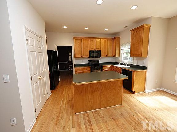 Spacious brick-front home on cul-de-sac has 2-story foyer, refinished hardwoods, living rm, dining rm, breakfast rm & family rm leading to a new deck. Second floor has 4 bdrms with plenty of closet space. Master bath has new shower glass enclosure, refinished wood cabinets, updated hardware. Third floor has 400 sq.ft. of finished space- like a 5 bedroom house! New carpet & fresh paint. Great location- close to SAS, shopping, I40, parks & greenways.