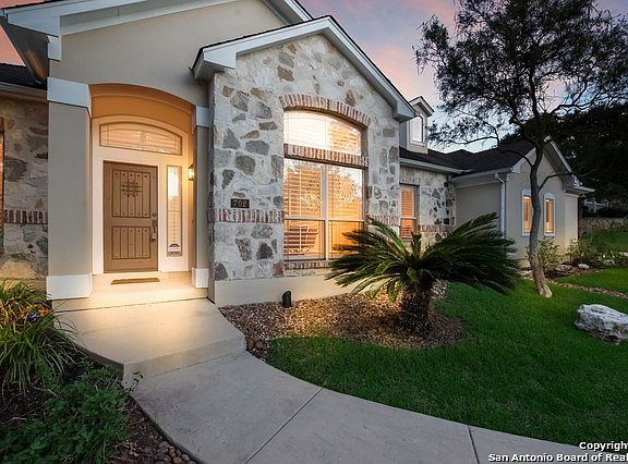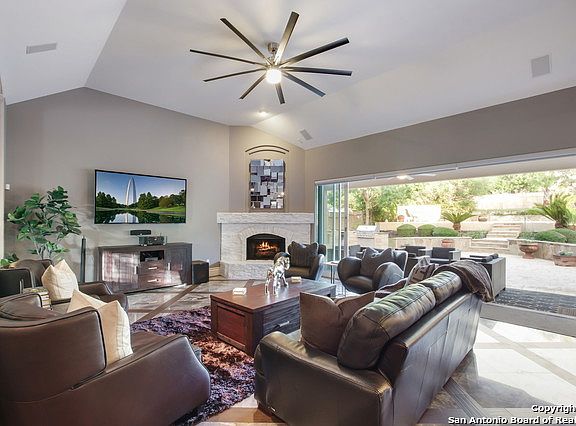 Absolutely gorgeous 1.5 story in Stone Oak! Completely renovated home w/ transitional style & over $190K in high-end upgrades! Gourmet kitchen w/ upscale appliances, wine fridge, granite, & custom cabinetry. Luxurious master w/ massaging tub, Italian tile, custom cabinets/shelving, & Carrera counters. Upstairs game rm w/ bar! Marble/wood tile floors, new carpet, neutral paint, & so much more! 15ft sliding doors extends family rm to the outdoors. Backyard oasis w/ sparkling pool, spa, & new outdoor kitchen!