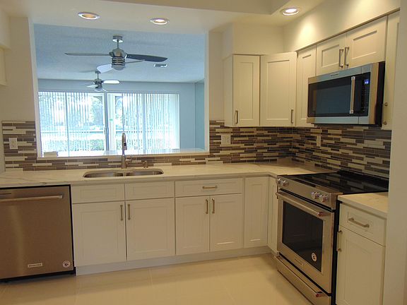 WELCOME TO THIS RARE OFFERING OF A SPACIOUS 1ST FLOOR REMODEL WITH WATER & GOLF VIEWS. THE EAT-IN KITCHEN FEATURES QUARTZ COUNTERTOPS, NEW CABINETRY & UPGRADED STAINLESS APPLIANCES. 2020 AC. NEW FLOORING THROUGHOUT INCLUDES LARGE TILING & PREMIUM WATER-RESISTANT WOOD -BASED LAMINATE. THE NEWLY RETILED LARGE SCREENED PATIO HAS ACCORDION HURRICANE SHUTTERS. RELAX AT THE POOL JUST A SHORT DISTANCE AWAY+ ENJOY THIS CAREFREE LIVING WITH A CONDO FEE THAT INCLUDES CABLE, COMMON AREAS, EXTERIOR BLDG. INSURANCE, LAWN CARE & CARE OF THE EXTERIOR, WATER & SEWER. DESIRABLY LOCATED WITHIN PGA NATIONAL WITH ITS PARKS, FITNESS , BAR, RESTAURANTS & A SHORT RIDE TO THE BEACH, SHOPPING & ENTERTAINMENT.
