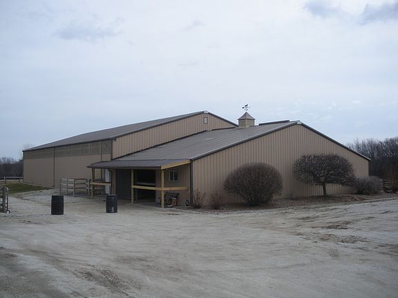 Operating horse farm on 27 +/- Acres that includes 48' x 72' machine shed, 10 stall barn approximately 36'x60' with tack room and hydrant and indoor arena approximately 104x60. 13 of 27 acres fenced. Additionally, a well kept, older farmhouse with full basement, main level bedroom with den or office & 1st floor bath and 2nd floor bedroom. House and 1 acre at 700 S Barreville is not included - Seller is splitting off approximately 4 acres and adding to larger parcel.