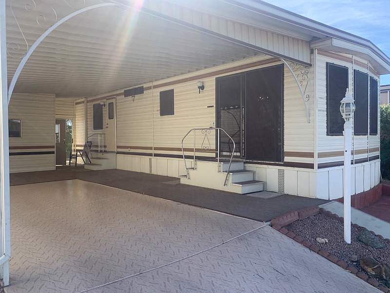 Located in the beautiful Superstition Sunrise RV Resort is this beautifully kept and upgraded home. Being situated on the very hard to find South wall, this back yard offers a large, private area for entertaining and soaking in the sun! The front has no shortage of advantages with a new paver golf cart driveway and room for multiple vehicles and an outdoor entertaining area. Inside the home the new floors are beautiful and really compliment the home's features. The kitchen offers more counter and cabinet space than most. Owners have added a lot to this home, but the brand new large step-in shower might be the most impressive. Forget about the hard Arizona water, you get a high quality water softener. Roof freshly coated with aluminum asphalt coating including a 5 year warranty. This might just be the nicest home on the South wall, but it is one of the most affordable so don't miss out!