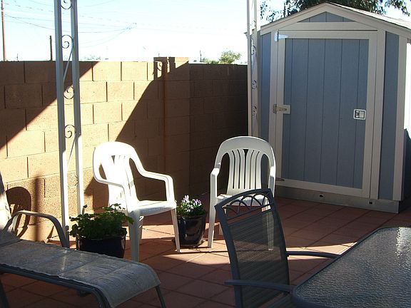 2006 Cavco park model with many ammenties including washer-dryer, dishwasher, disposal, RO water system and large back covered patio with furniture and a grill. Fully furnished, updated and ready to move; all you need are your personal items. New queen mattress, new roof, new hot water heater, security doors, flat screen TV and outdoor shed in great condition. This is a must see property that is in excellent condition.