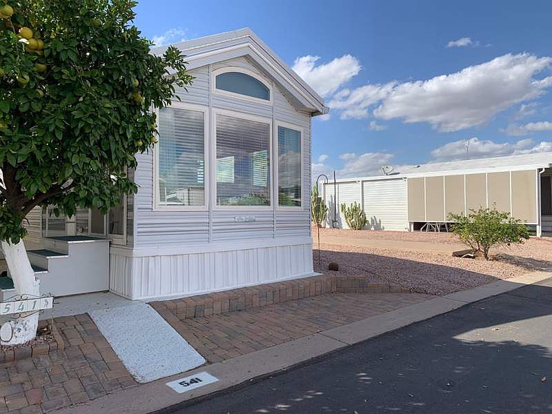 Welcome to Superstition Sunrise where the fun never sets! Come see all Apache Junction has to offer with this perfect location. Not far from Superstition Sunrise you have; Trails, shopping, dining, entertainment, fishing and more. If you were looking to stay closer to home this community is packed with amenities too! We have a poolside cabana that serves lunch, indoor pool, outdoor pool, spas, gyms, woodworking shop, stain glass shop, pickleball, softball, multiple dog parks, quilting classes, computer classes, live entertainment and more! Here in this beautiful community in the PET SECTION we have this pristine 1998 Cavco that is waiting for it's now owner! This home is very well cared for and it shows. The large carport has room for parking and a large outdoor entertaining area to enjoy the warm Arizona winters! You will be impressed with this park model from the moment you step inside. In the recent years the current owners have replaced all the windows, added new 2"" faux wood blinds, replaced the roof, added a paver golf cart driveway in front of the home, replaced the flooring, a and replaced the sliding patio door. This home invites you in with large windows and high ceilings, making the atmosphere light and bright! The large living room opens to the kitchen and dining room, making the floorplan open and ideal for entertaining. The kitchen is perfect for the chef of the family with ample counterspace, lots of cabinets and a full pantry closet! The bedroom offers lots of storage with closets spanning two walls! Frist come first serve, homes in the pet section don't last long!