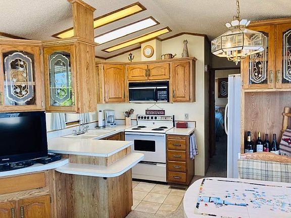 Fully furnished home in coveted PET SECTION! Bring Fido to this cute, clean, sunny home and enjoy the amazing dog park just a few houses down. Move in ready, this home has everything you need including furnishings, linens, dishes, housewares, and appliances. Pull out sofa in living room, popular U-shaped kitchen with dining nook. Built in dresser and plenty of storage space in bedroom. Large detached shed for extra storage. Come join the fun at Superstition Sunrise, a 55+ resort with indoor/outdoor pools, billiards, bocce ball, softball, on-site restaurant and much more! Call the sales office today to see this home. Busy season is upon us. Act fast and don't miss out!