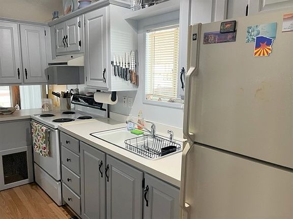 Welcome to Superstition Sunrise where the ""fun"" never sets! This home is surrounded by mountain views in beautiful Apache Junction Arizona in a 55+ community with almost every amenity you can imagine! This freshly painted home has a nice bright galley kitchen and s updated with laminate flooring and PEX piping. You'll find a full size washer and dryer and workbench area in the ex-large walk-in shed. The homeowner has also installed pavers in the back yard. This home is ready for a new owner.