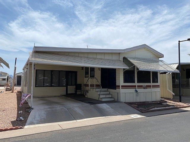 Welcome to Superstition Sunrise where the ""fun"" never sets! This fully furnished home is surrounded by mountain views in beautiful Apache Junction AZ in a premiere 55+ community with almost every amenity you can imagine! The home has newer AC (2017), an L-shape kitchen, build-in microwave, Berber carpet, bathtub with shower, lots of extra storage in the AZ Room, kitchen, and outside in the shed! The Arizona room provides lots of extra living space and has storage areas and a separate laundry room with a full-size washer/dryer. This home is ready for a new owner!