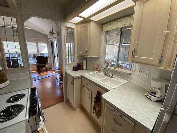 Welcome to Superstition Sunrise where the ""fun"" never sets. This home - located in our PET section - is surrounded by mountain views in beautiful Apache Junction Arizona. Our community has almost every amenity you can imagine - 2 salt water pools, pickleball, shuffle board, billiards, stain glass, wood working, beautiful ballroom, full-size soft ball field, etc. The home features a NEW AC, galley kitchen with double sinks and extra storage, and the bath features a tub/shower combination, and also has nice storage. Be sure to check out the extra large walk-in shed that has it's own AC, beautiful laminate flooring and can be used for extra living space or as sleeping space for company.. Also included in this shed is the stackable washer/dryer and storage closets. Outside you'll find an L-shaped porch, large enough for entertaining or just enjoying your morning/evening beverage. And there's storage space located under the porch! Another shed is located in the back yard. This home is ready for its new owner!