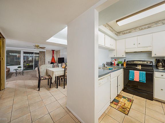 Sweet end unit townhouse in convenient east side location is just waiting for you to call this your new home! The spacious home has been freshly painted throughout in bright white making the space feel even bigger! The living room with retro free standing red fireplace, new neutral carpet & a wall of windows with sliding door that leads to a cozy covered patio & backyard space with Betty Boop deco shed with electric. Neutral tile floors in kitchen, dining, hall & 1 bedroom. 2 bedrooms with painted concrete floors. Kitchen with white cabinets, blue countertops & convenient breakfast bar. 2019 Water Heater. 5 year HVAC. Enjoy maintenance free living at Pantano Park while spending leisure time enjoying the community pool & tennis courts. Transferable roof, termite & water heater warranty HOA includes water, sewer, trash and common area maintenance plus pool and tennis amenities. Location is minutes to shopping, restaurants and Sprouts Market at Broadway and Pantano.