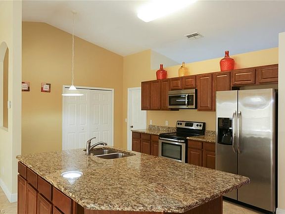 Located in the heart of Cape Coral, this well maintained, spacious home will fit all your needs. As you enter you will notice the archways, 18" diagonal tile with mosaic inlay, and the unique architecture of the home. With a formal living room, large private den/study and open concept family room there is plenty of room for everyone! Beautiful Granite countertops and oversized island in the kitchen, along with stainless appliances and room for a table, offer a delightful place to gather for meals. Laminate flooring is found in the bedrooms and the bathrooms offer tile and granite. This home is on a large corner lot in an established neighborhood. Close proximity to Pine Island Road with its restaurants and shops, and not far from Veterans Parkway for easy access into Ft. Myers. Schedule your showing today!