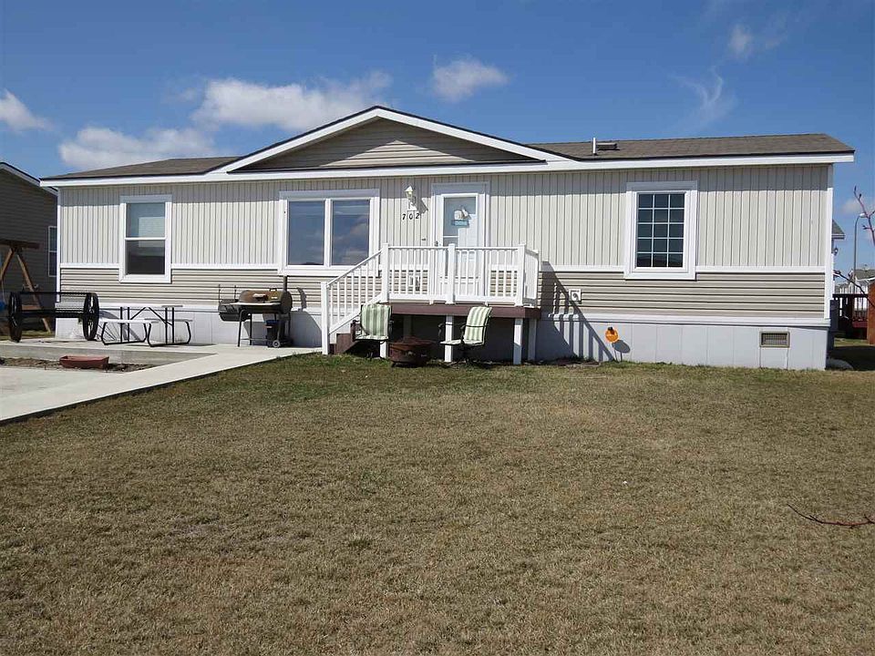 Like new 2011 Schultz home!! In EXCELLENT condition. This 3 bedroom 2 bath home features nice size bedrooms and 2 family rooms. Love the vaulted ceilings. Lots of cupboard space in the kitchen with dark woodwork makes it look so modern. This home has a nice open floor plan!, Master suite on one end and the other two bedrooms and their bath on the other end!! The yard has been landscaped with grass and rock work. The concrete slab for garage, sidewalk and patio newly poured. This place is priced to sell and is move in ready!!