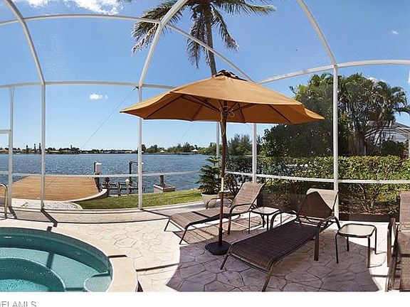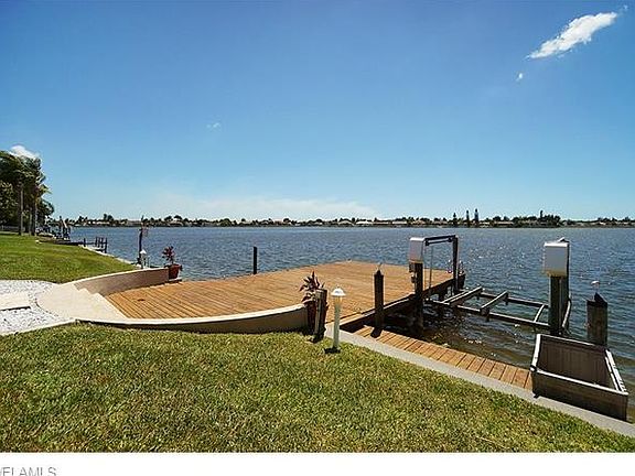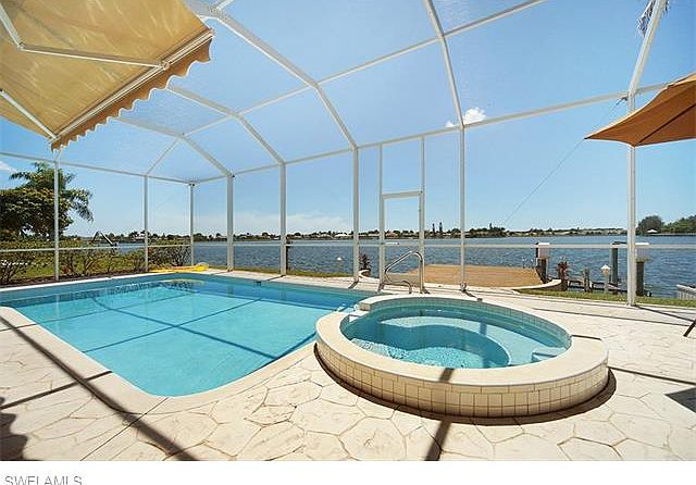 Location - Location - Location. Custom Pool Home with a Million Dollar View on Lake Kennedy in the heart of Cape Coral, 3 bed, 2 1/2 bath on Cape Coral's largest freshwater lake, enjoy hours of boating to connected Shamrock Lakes, Lake Saratoga, Weatherly Lake, Alhambra Lake and the longest freshwater canal system in Cape Coral. Nice established neighborhood, close to shopping, restaurants and Sun Splash waterpark. View gorgeous sunsets from your solar heated pool or solar/electric heated spa with western rear exposure. Enjoy sun bathing or fishing from your dock with large wooden boat dock, jet ski lift and boat lift. Roll down shutters on windows and doors, electric awning on lanai, pool bath, in wall vacuum system, tiled garage floor, turnkey furnished. Perfect income property for Investors. Don't wait until it's gone - call for a showing now!