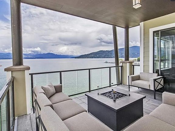 'The Model' Downtown Luxury Lake Life Awaits. Live in modern luxury just a short walk to downtown's energy, bask in the big lake's spring warmth, ponder off towards the snowcapped Cabinet Mountains that straddle Idaho and Montana. All from your 3rd floor, end unit at the luxurious Seasons at Sandpoint. This modern 3 bed 2 bath is the finest offering at the Seasons and was remodeled very recently as a showcase to sell the next and final building in this amenity rich waterfront community. Nothing was spared here with excellence and fine finishes abound. The Model is being offered this fall, winter, and spring as a mid-term lease. The King Master ensuite with balcony access has a comfortable bed with lake views There are 2 additional Queen rooms for 4 more occupants, each with modern and high end furnishings and adjustable base beds. Schweitzer Mountain views out these room's windows. There is a 2nd Full bath with soaking tub that these room share. The patio has a large L-shaped couch and warm gas fireplace to allow for evening drinks and snacks while enjoying the lake and mountain views. You have 1 garage parking space, elevator access, and a yoga community room in this building. Additional amenities include a large year-round heated pool overlooking the lakefront and private beach area as well as a large hot tub. Next to the pool area is the large gym space that has plenty of equipment to satisfy a morning workout. The wonderful Pend Oreille Bay Trail is out your backdoor and offers a 3 mile lakefront trail perfect for an evening walk or jog. The Seasons at Sandpoint enjoys a private beach and marina area that is available for tenants. With a boat slip available, you can bring your boat and enjoy the largest lake in Idaho! On the third floor of the GYM building, you'll find the WIldflower Day Spa where you will love the massage treatments, hair, nails, and their fabulous steam room. Come join us at the Seasons at Sandpoint in the Model! Flexible