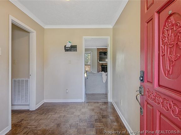 Nestled on a picturesque 0.44-acre wooded corner lot, this brick ranch offers spacious living. With 4 bedrooms and 3.5 bathrooms across 2795 square feet, this home combines comfort with functionality. Upon entry, a well-appointed kitchen welcomes you, complemented by a formal dining area ideal for hosting gatherings. The family room provides a cozy retreat, perfect for relaxation and entertainment. Additionally, an extra flex room with a half bath offers versatility. The primary bedroom is generously sized and enhanced by a large bathroom featuring dual vanities and a tiled shower. The second bedroom also has it's own bath. Conveniently located, this home enjoys proximity to Fort Liberty, ensuring easy access to amenities such as shopping, restaurants, and entertainment. Welcome Home! *AGENTS*-not a member of LLP-call Showing Time for access/disclosures.