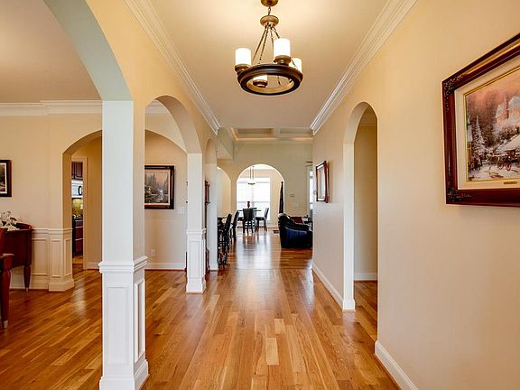 Corner Lot W/Detached garage with lots of storage. Hrwd on mainlevel MB has triple trey ceiling,Unbelieveable Mbath.Tile shower, jac/tub. Beautiful Kit w/maple cab. w/cherry finish. Double ovens,granite counter tops..Coffered ceing built in shelves.