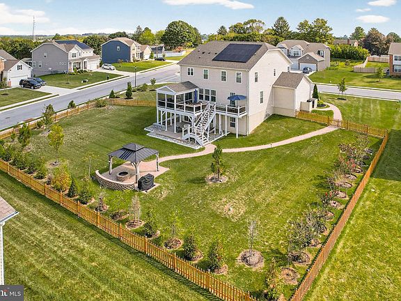 Welcome to this exceptional residence offering refined finishes, extensive updates, and an expansive layout designed for modern living. A large driveway and three car garage provide an impressive approach. Inside, the foyer opens to a sun filled family room with serene views of the private backyard. The adjacent gourmet kitchen has been beautifully updated with a center island, upgraded countertops, new backsplash, and a breakfast area that flows seamlessly to the screened in deck with ceiling fan and built in television. A formal dining room, main level bedroom with full bath, and a mudroom leading to the garage complete this level. The upper level features a luxurious primary suite with French doors, a sitting room, and a spa like en suite bath offering a soaking tub, stall shower, two separate vanities, and a private water closet. Three additional bedrooms are found on this level, including one with an attached bath, along with a full hall bath. The fully finished walkout basement extends the living space with new flooring, a bedroom, a full bath, and a generous storage area. Outdoors, the property has been transformed into a true retreat with a new rear fence, thirty six newly planted trees, an expansive patio, a deck, a screened in deck, and a cabana with firepit. A thoughtfully designed sidewalk leads directly to the backyard entrance. Additional features include solar panels, an irrigation system, new second floor windows, and a whole house generator.