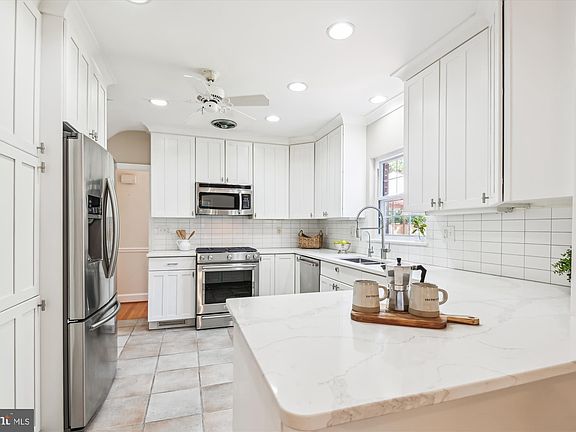 Discover the perfect blend of classic charm and contemporary elegance in this stunning brick home with a slate roof and lush professional landscaping. Nestled in the coveted Stoneleigh community, this home boasts storybook curb appeal and a wealth of luxurious features. A major renovation completed in 2021 has transformed this home, creating a gourmet kitchen with an open concept floor plan, perfect for modern living. The kitchen features high-end appliances, custom cabinetry, and ample counter space, making it a chef's dream. The magnificent first floor primary bedroom suite offers a spa-like retreat with a renovated bathroom that includes a floating vanity, a large shower with a rain head spout, and exquisite tile work. This sanctuary provides a peaceful escape at the end of a long day. Throughout the home, you'll find classic features such as hardwood floors, a wood-burning fireplace in the living room, crown moldings, and beautiful built-ins. The upper-level features three bedrooms and a renovated bathroom, providing ample space for family and guests. Nearly every major system has been addressed, ensuring years of carefree living without expensive surprises, including updated A/C, roof, replacement windows, and gutters.  Step outside to the large private backyard, complete with a spacious deck that backs to serene trees, offering a tranquil outdoor oasis. The Stoneleigh community enhances your lifestyle with amenities such as a neighborhood pool, basketball courts, a picnic area, and a tot lot/playground. This exquisite home combines quality construction, luxury finishes, and unparalleled amenities, making it a rare gem in the Stoneleigh community. Don't miss your chance to own this remarkable property.
