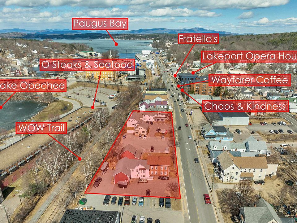 LAKEPORT NH. Becoming a new destination point as ongoing investing and developing continue to insure vision with diversity.Bring your vision and ideas to help compliment other developers. In addition to room rentals, there are apartments, two commercial rentals and two barns used by the seller.40 parking spaces. The Lakeport Opera House, O Steaks and Seafood, Fratellos, Irwins and Channel Marine all within walking distance. New building now in process to offer mixed use with retail and residential and a parking garage. More to come.