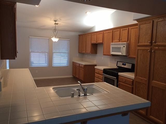 4 bedroom house for rent. FOR RENT - $1,950/month. Sharp, clean, 4 bedroom + 2 bath, vaulted ceilings, ceiling fans, gray interior paint with modern-look tile flooring, newer energy efficient central a/c unit, 2 car garage, covered patio, easy access to Westside Parkway, Liberty High School district. Weekly gardener included. Non-smokers only please. Vermillion Dr 93312. Lease term 1 year min. Credit score and income documentation required. Up to 2 pets considered with additional deposit. Owner pays for gardener and trash. Tenant responsible for all other utilities and services.