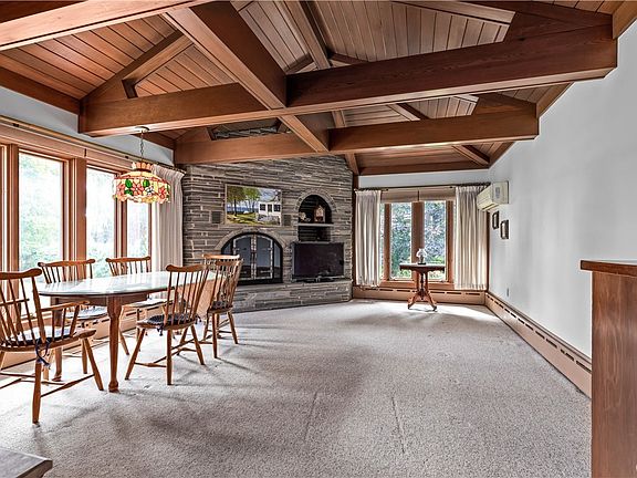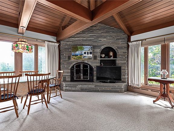 Tremendous opportunity - incredible quality 2,350 sq ft ranch home (plus an additional 448 sq ft of finished basement space), loved and cared for by the same family since being built. Home features an abundance of Pennsylvania bluestone, including 3 impressive fireplaces. Beautiful granite counter kitchen with island sits wide open to cathedral ceiling family room with corner bluestone fireplace. Door from family room leads to back deck and patio in private back yard, giving great space to entertain or simply relax and enjoy. Hardwood floors underneath carpets throughout the hallway and bedroom. Living room centered around bluestone fireplace sits open to formal dining room. Back yard is secluded with hedges yielding tremendous privacy. Finished basement contains wide open rec room with bluestone fireplace and wet bar, making for outstanding additional living space. Makes for very manageable commute to Syracuse, Liverpool, Clay, Baldwinsville or Oswego. Don't miss out on this opportunity to own a beautiful ranch home with an additional lot included - built by, adored, and cared for by the same family for over 70 years.