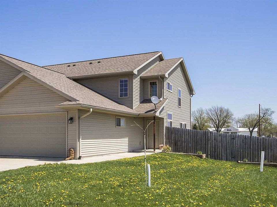This three bedroom, two bath zero lot in Kalona has a lot of character. It has an open floor plan great for entertaining. There's a slider off the dining room to a large deck and a privacy fenced back yard. The laundry room is located on the 2nd floor near the bedrooms and the washer & dryer stay. There's a 1/2 bath/washroom located just off the kitchen & garage entrance. All appliances stay, however not warranted. This is a great place!
