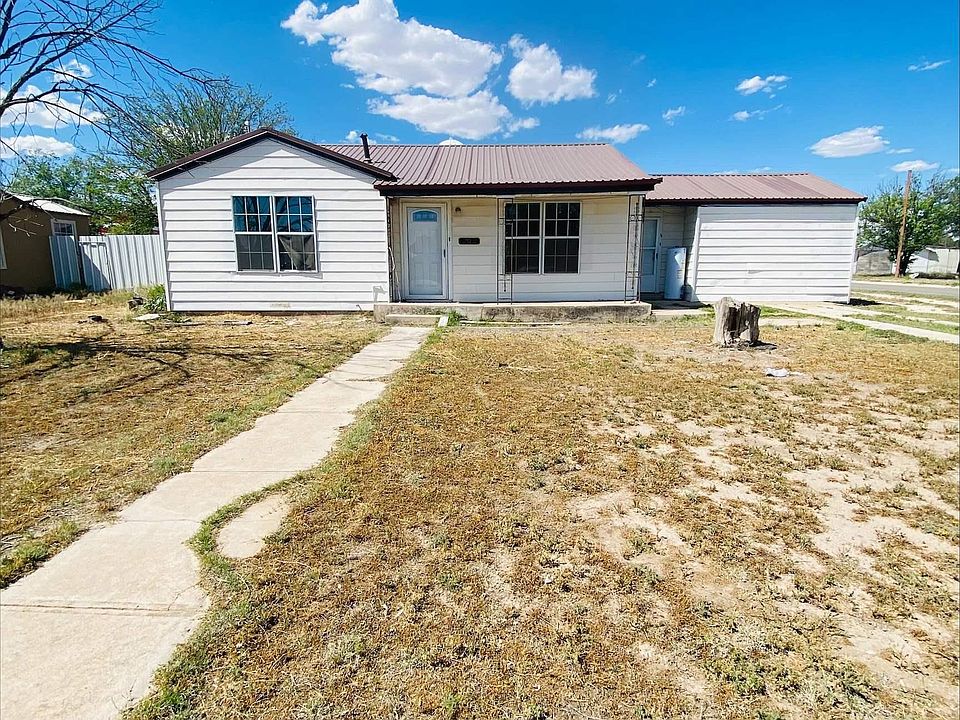Look at this nice home that has had updates and has a large backyard. Home is 3 bedrooms, 1 bathroom. Some updates include brand new central heating and cooling, new water heater, insulation, walls, paint, texture, tile, kitchen cabinets, bathroom, updated breaker box, metal roof. This is a corner lot with a large backyard and a small metal storage in the back.