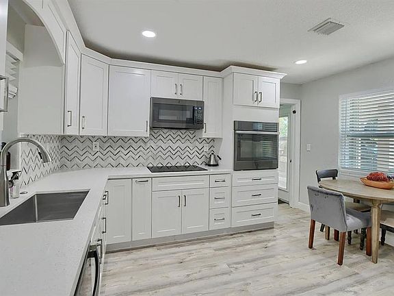 Charming 2 Bedroom/2 Bath, East Boca single family home w/large, fenced backyard & screened-in patio. Features include complete impact windows. All new flooring thru-out 2022, new blinds thru-out, new flat roof, French doors leading to covered screened patio, beautifully Oak trees, circular driveway, large NEW kitchen, appliances, new laundry room, & washer/dryer all new in 2022, new bathrooms in 2022, AC 4 yrs old. All new ac duct work in 2022, New electrical panel, all interior and exterior freshly painted, all interior doors, replaced w/solid core doors, all gutters have been added, crown molding & new base boards, all bedroom closets have built ins. Plenty of room for addition and pool, Walking distance to shopping, beaches & the Boca Downtown area. GREAT SCHOOL ZONE!!