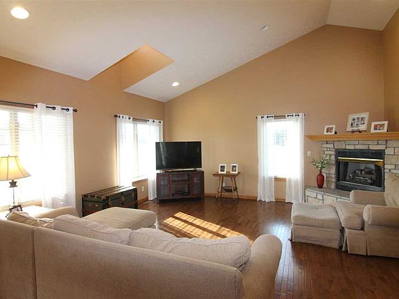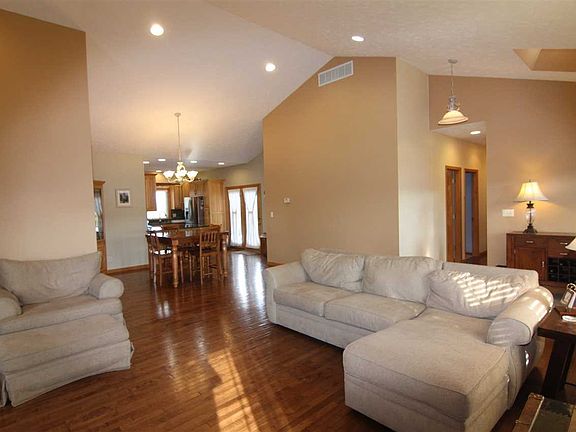 This is a must see 3 bedroom brick ranch with basement on 1.18 acres located on a cul-de-sac in Haubstadt's Water Tower subdivision! The property includes a 2000sqft insulated and heated shop and also a heated in-ground pool! Once inside the home you will notice a spacious open floor plan. The great room offers vaulted ceilings, corner gas fireplace, hardwood floors, skylights and is open to the dining and kitchen. The kitchen includes stainless appliances, granite countertops, tile backsplash and a breakfast bar along with easy access to the dining area with a built-in corner china cabinet. The bedrooms are grouped together with the master featuring tray ceiling, full bath with shower / tub combo, dual vanity, walk-in closet, and a linen closet. Bedroom 2 is highlighted with a cathedral ceiling, arched window and across the hall from the spare bathroom that also includes a dual vanity! If that is not enough room, relax or play games in the basement family room complete with its own full bathroom and easy access to the utility room. For those of us that need additional storage, the 2000sqft detached garage is equipped with heat, loft storage, bath and a floor drain. For those hot summer days, relax in the 16x36 in-ground salt water pool (approx. 5 years old) with plenty of space to entertain on the aggregate patio! This home is a must see!!
