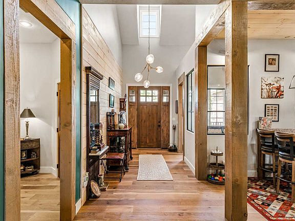 Situated on a corner lot in Bentwater is this 5 bedroom, 4 full bath, 2 half bath home with 5,480 square feet. Immaculate landscaping leads you up to the covered front porch. Soaring ceilings welcome you inside to this rustic beauty. Hardwood floors and wood beams can be found throughout the main level. An office space is directly off of the entryway and includes windows to allow natural light to flow into the spacious living room with floor to ceiling gas log fireplace. The open floor plan provides easy entertaining with guests, and the kitchen is anyones dream. Highlights include a 36'' gas range with professional hood vented outside. Custom cabinetry and granite counters make up the space and house an independent refrigerator and freezer, beverage refrigerator, ice maker, additional bar sink, and garbage disposal. The large center island is a great space for food prep and includes a dishwasher and farmhouse style sink. The walk-in pantry is located through the cabinetry next to the fridge with a second dishwasher and microwave. Relax in the custom master suite with heated tile flooring in the bathroom, soaking tub, honeycomb tiled shower with two shower heads, & double vanities. Other features include a 2 walk-in closets with wood shelving and a washer/dryer hookup. A junior suite includes a full bath with subway tiled shower. Upstairs is an oversized bedroom with pendant lighting, built in custom desks, and private bath. The laundry room has floor to ceiling cabinetry and tons of storage space. Head downstairs to full finished basement where you'll find a second family room, space for a game room, a full kitchen/dining area, & an additional bed/bath making this the perfect mother in-law suite. An additional space is currently being used as a workout area. Enjoy the outdoors from the screened in, covered, back deck with gas heater, outdoor refrigerator, gas fireplace, pellet stove, and built in gas stove. See more...