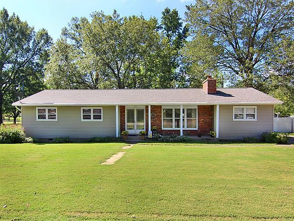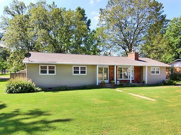 Stately 1800 sq ft ranch home on a corner lot adjoining the park with 3 bedrooms, living room, family room, kitchen, dining room, and separate laundry room with door to backyard. Central heat & air (window units were used when not turning on central system-they will be removed), fireplace in living room. Patio doors to backyard from one bedroom, and the family room. New roof installed August 2023. Detached garage with 2nd overhead door to extended parking or storage plus an additional storage unit in fenced backyard. Seller providing a 1 year home warranty by Choice to new buyer.