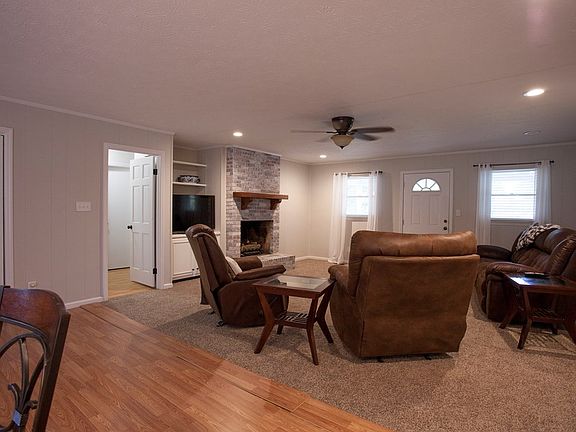 This lovely one-level brick home features a long list of updates, including fresh paint throughout the home and new flooring in the entry and living room. The living area boasts a gorgeous white-washed fireplace with beautifully crafted built-ins. This cozy yet open space will immediately make you feel right at home! The kitchen includes updated white cabinets and dining area, along with a large walk-in mudroom. The master bedroom shows elegantly with wood flooring and a private master bathroom and closet. The secondary bedrooms are spacious with wood flooring throughout as well. This home sits on a large, level lot with a shed for all your storage needs. You can even enjoy your morning coffee off of the back porch. This home is a must see! Call today to schedule a tour!