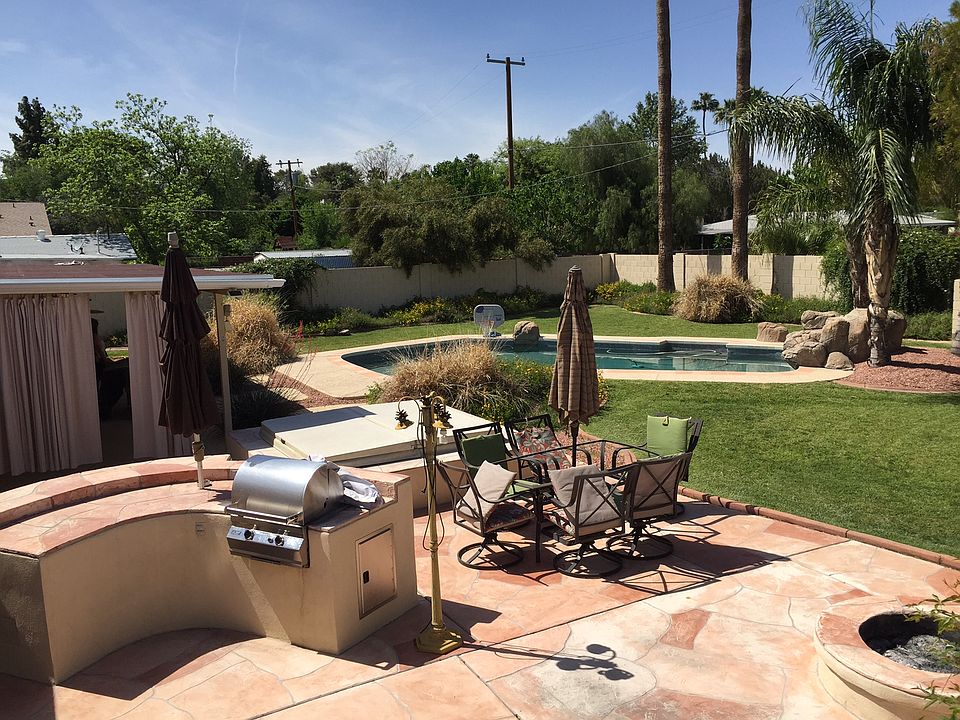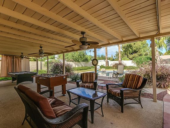 Backyard features a beautiful pebbletec pool with rock waterfall, built-in separate jacuzzi, built-in BBQ, fire pit, extended patio, drip system for backyard vegetation, and oversized irrigated lot. House includes 2 car garage, Dual Pane Low-E tinted windows, Kinetico softwater system with RO filter and tap on kitchen sink, built-in bose surround in living room, added insulation, Top of the line Trane A/C unit, new roof in 2010, Pool-side 1/2 bath, Small storage room/workshop.