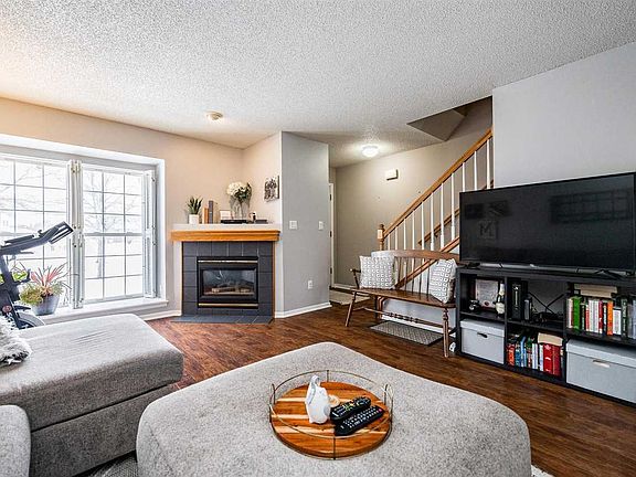 Delightful townhouse condo features comfortable open plan main level living room with gas corner fireplace and dining area with glass sliding doors to a private deck. Two very large bedrooms on the second floor with vaulted ceilings, large closets, and picture windows. Full bath enters from primary bedroom as well as from hallway with dual sinks. Lower level is a great drop-zone and laundry room with direct access to the drive-under 2-car garage. New lux vinyl plank floors in '20, new carpeting '19, new rubber floor over concrete basement '18, and newer paint throughout. New refrigerator '22 & new oven & dryer '23. HOA recently replace roof & is updating landscaping & windows in 2023-24. On bus route, next to biking/walking path, pond, & green space. Easy access to UIHC, UI and I-380.