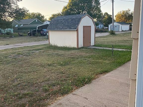 Great family home with room for more! This home is located one block from the school and has lots of potential. The freshly painted main floor has two bedrooms and one bath, with spacious living, dining and kitchen areas. There is lots of storage throughout the house, with the master bedroom having two closets. The roof shingles are class 4 impact resistant shingles that were installed two years ago with new gutters installed this summer. There is also a two-car garage with a new electric garage door, as well as a shed for lawn and garden tools. The basement is a complete blank space to do with however you choose and has it’s own access through the garage as well as the house. All the main kitchen appliances stay. Washer/dryer hookups are located in the basement.