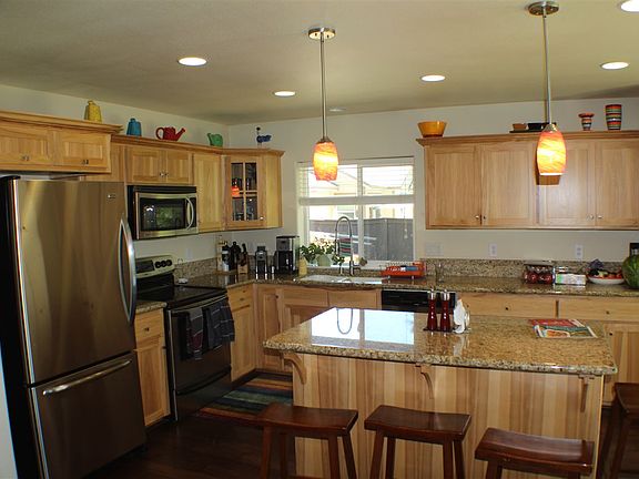 This home has been upgraded through out. The warm flooring meets you at the door and leads you to the granite counters in the kitchen. The large wood burning stove and rock hearth is perfect for those chilly winter days. Granite counters and tile floors continue through the bathrooms. Large 3 car garage, with additional parking along the side provides plenty of room for the toys. The large fenced backyard is fully irrigated with a new 12' x 14' gazebo installed in 2019 for cooling shade on those warm summer days! Front yard is beautifully landscaped and fully irrigated, requiring no hand watering. Driveway resurfaced in June of 2019. This home shows like brand new!
